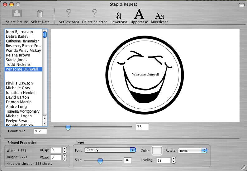 This program allows you to layer a list of names over top of a single image and automatically change the layered text which allows you to print multiply copies of and image with different text layered on top of each copy of an image (AKA variable data printing.) | |||